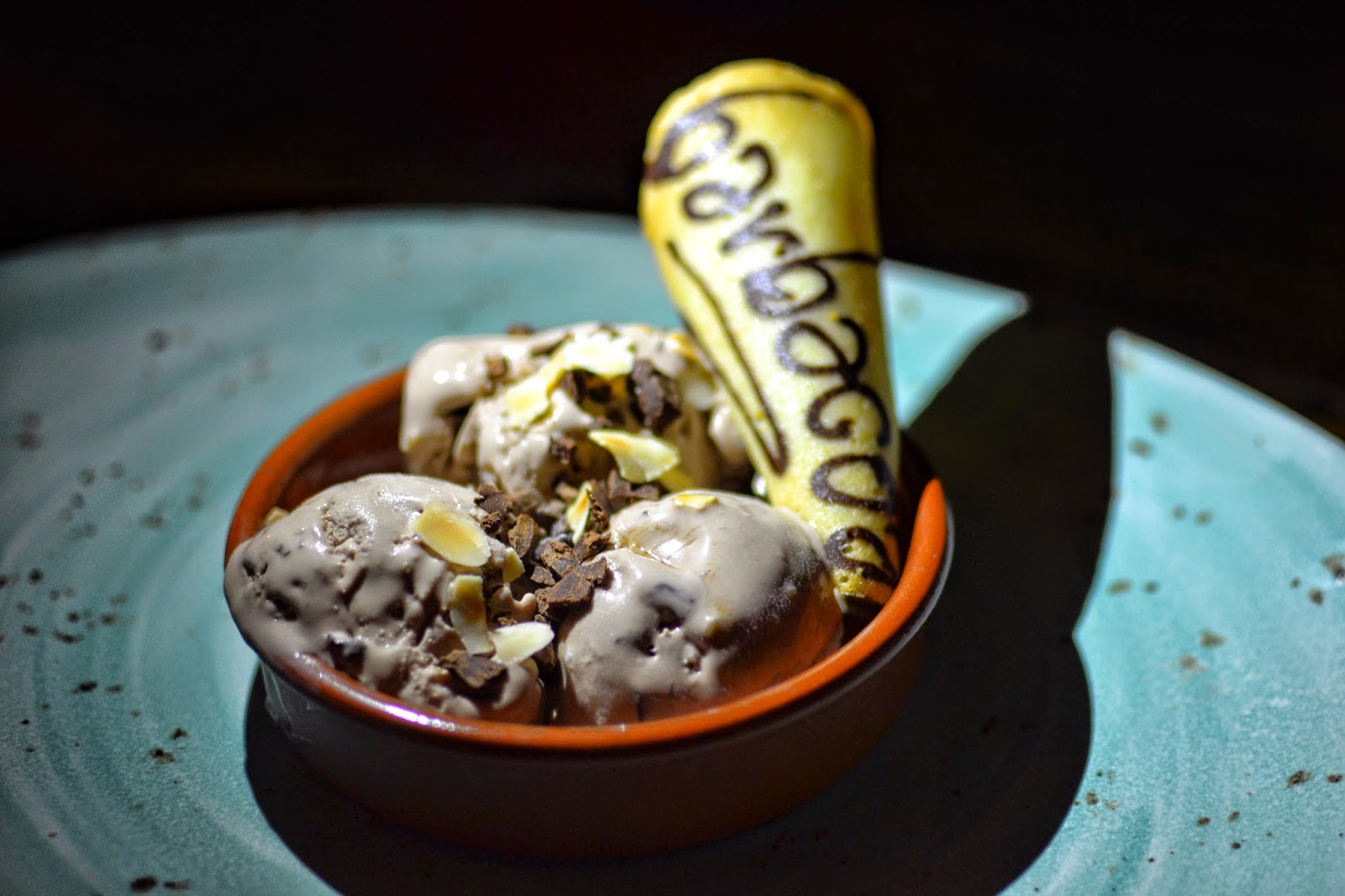 HONEY, CHOCOLATE AND FRANGELICO FLAVOURED LIQUID NITROGEN ICE CREAM MADE AT THE TABLE