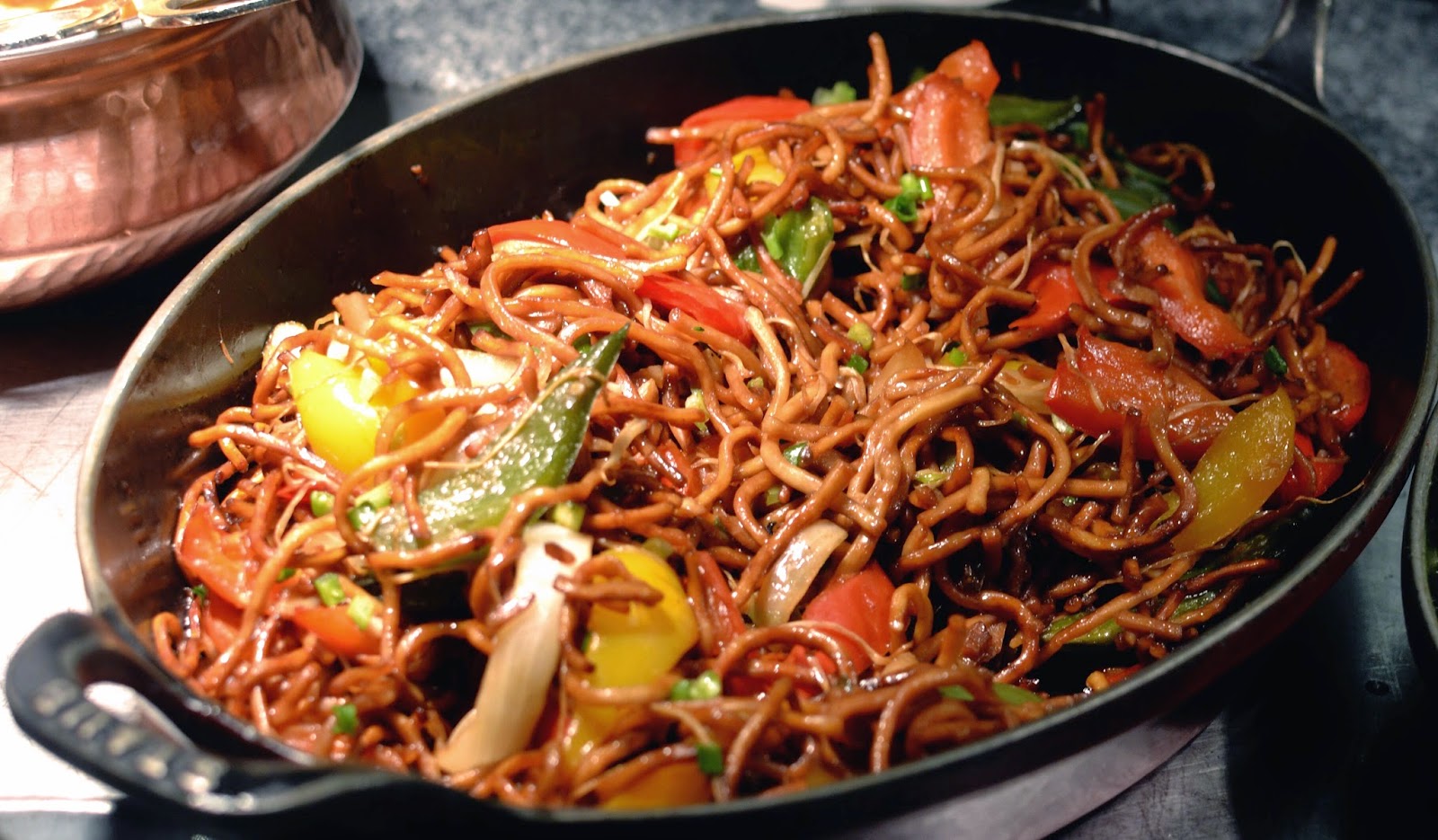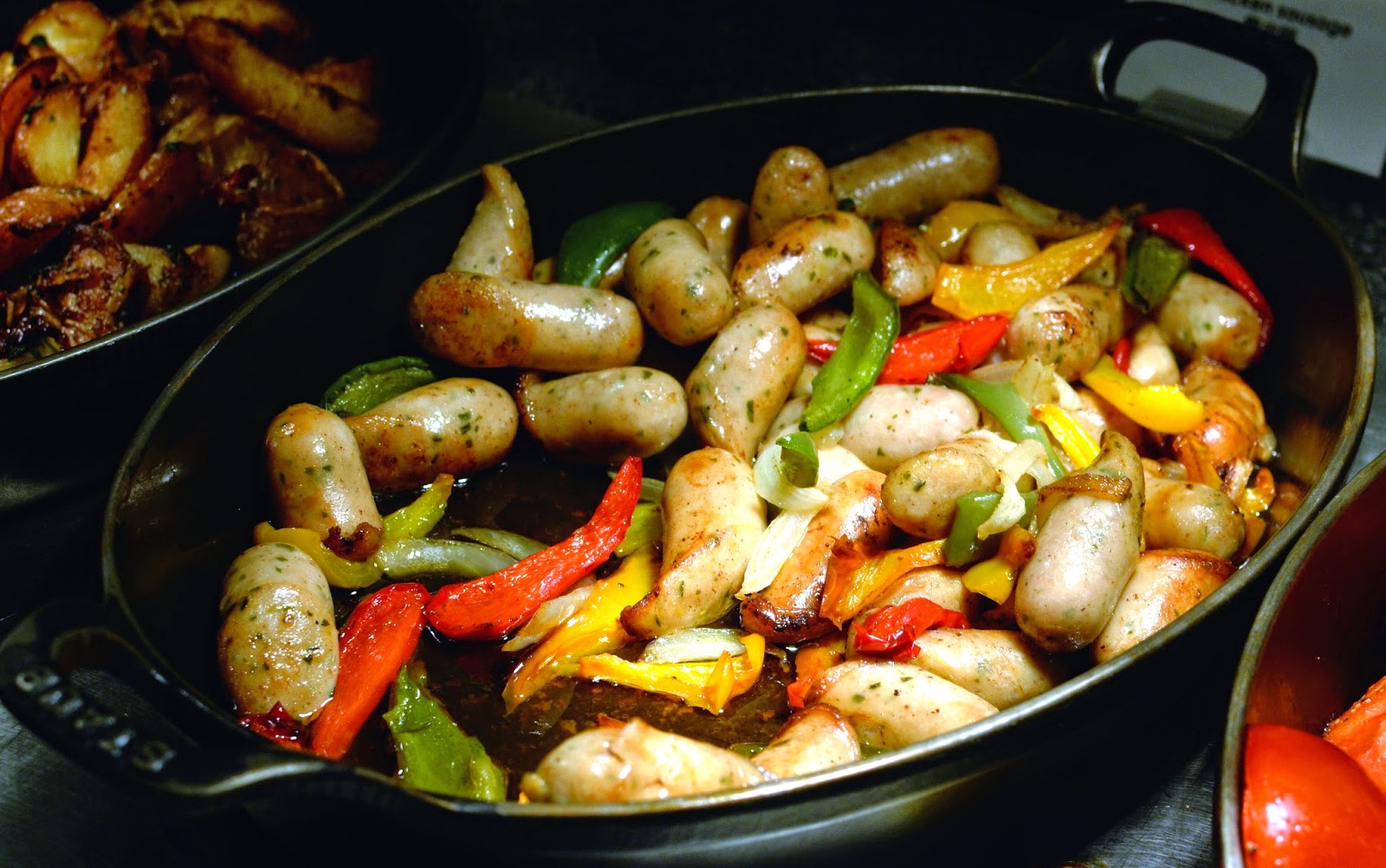 HOT BUFFET STATION INCLUDING NOODLES, SAUSAGES AND BACON
