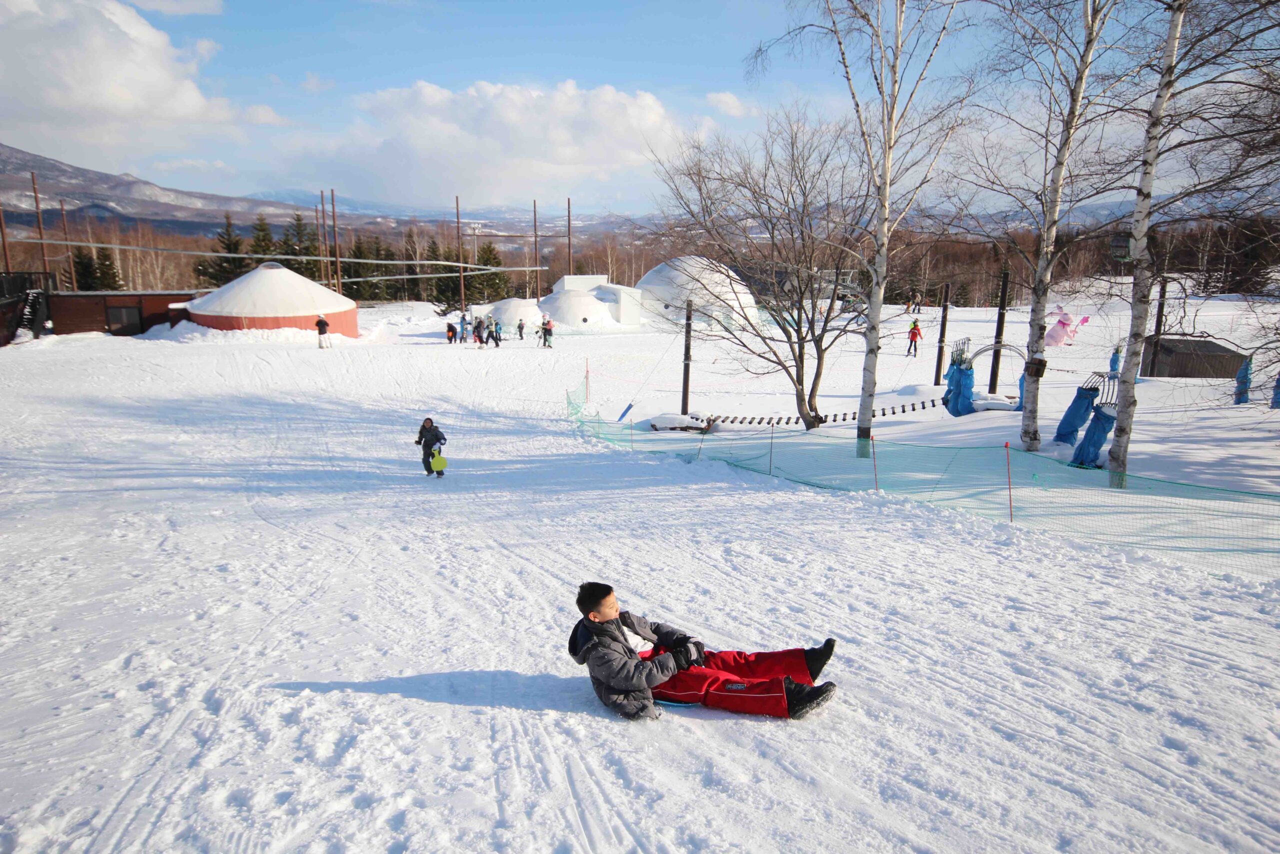 The resort’s ski-in, ski-out location is one of its greatest luxuries. Ski lifts just outside the door connect directly to Niseko’s world-class slopes, famous for their light powder snow. Everything you need for the mountains is on-site, from convenient ski rentals to lessons for all ages. After days on the slopes, our children still had plenty of energy to enjoy the kids’ sledding area, which became a highlight of the trip. Both of them loved racing and playing there, making it the perfect family-friendly touch.